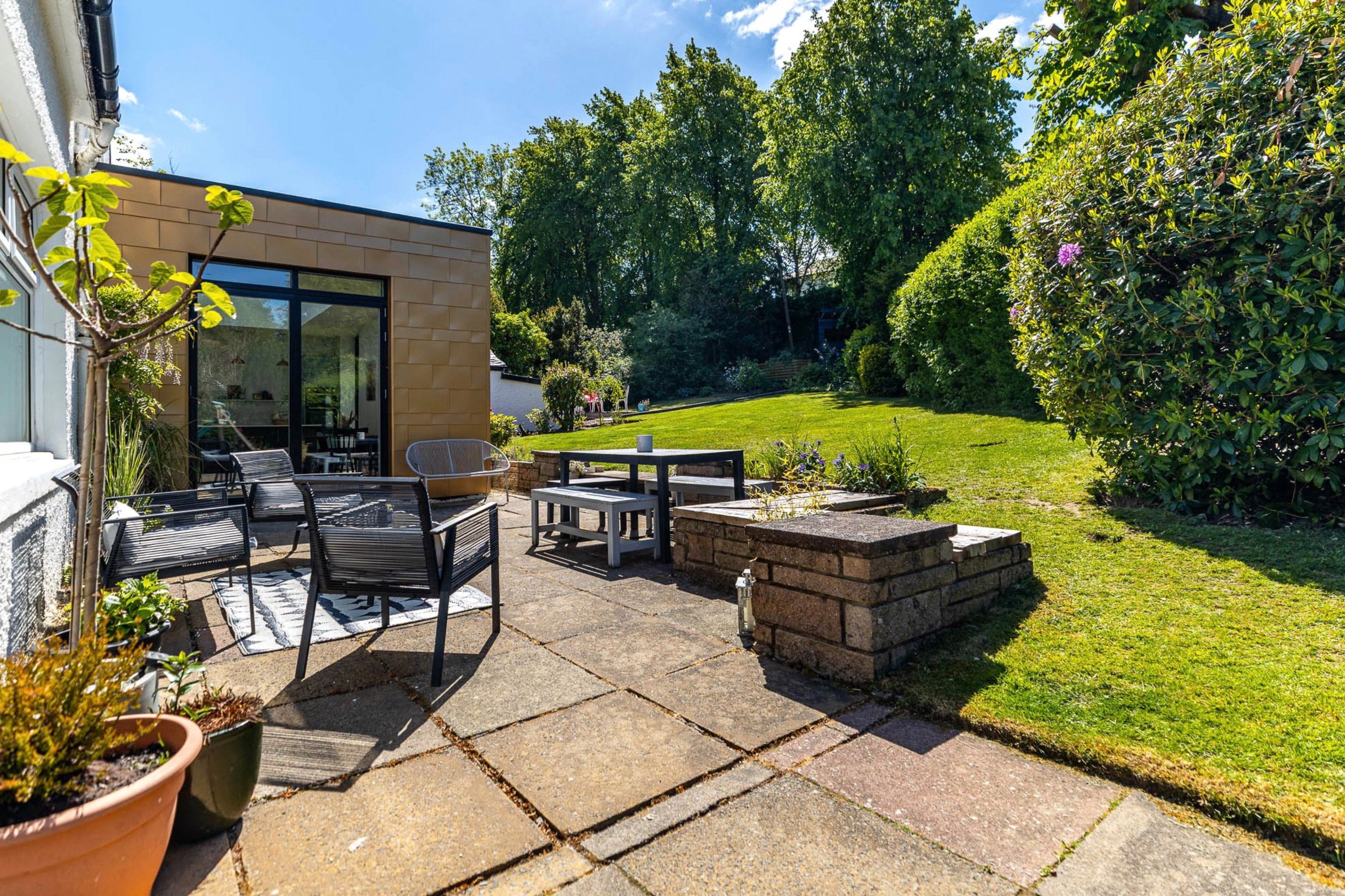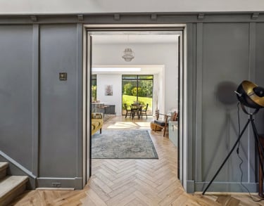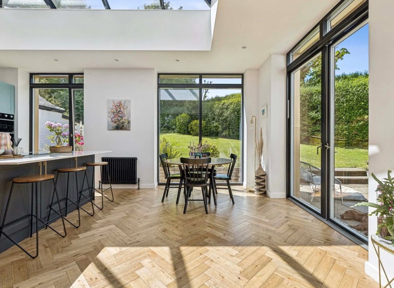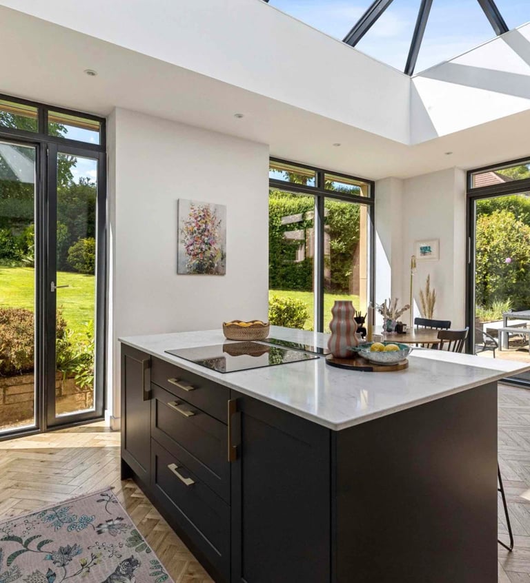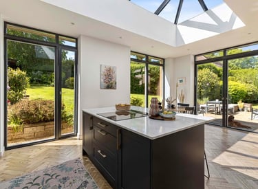Light-filled and effortlessly elegant. This gold shingle clad kitchen extension in Giffnock brings the garden right into the heart of the home, with expansive glazing, clean lines and a beautifully crafted island made for modern living. BBC Scotland's Home of the Year finalist 2025. A perfect balance of contemporary design and everyday comfort.